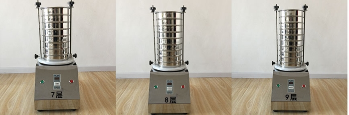 二、把標準篩具按孔徑從大到小,從下到上依次疊放到托盤座上,由凹槽或定位螺絲對標準篩具進行定位。